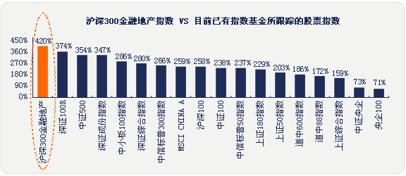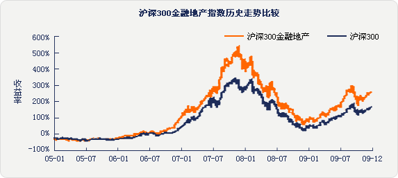 〔数据来源:Wind,2004年12月31日(沪深300金融地产指数的基期)-2009年12月31日,其中年化收益率为复合年化收益率〕;