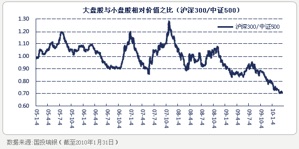 目前,金融地产行业已成为沪深300指数中权重最高的行业,截至2010年1月31日,金融地产公司占沪深300指数的权重达到37.18%,A股总市值达到5.45万亿元。而在目前沪深300指数的10个1级行业中,金融地产行业是除电信行业外估值最低的行业,截至2009年12月份,其P/E在22倍左右,相对于沪深300及其他行业指数,有一定的相对估值优势,投资安全边际较高。