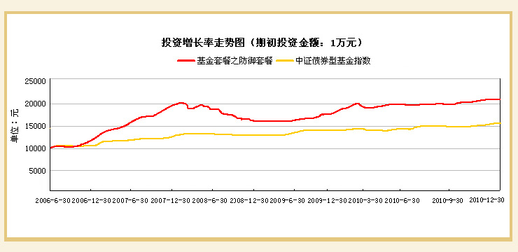 注:以上数据来自国投瑞银,截止日期为2010年12月30日,基准为中证债券型基金指数。其中,1年以上数据均为年化数据。下图中指数为中证债券型基金指数。