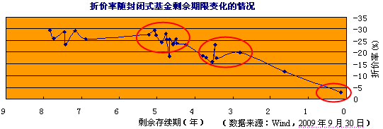 当封基的剩余存续期较短时(如<5年),随着到期日的临近,折价率将逐渐回落