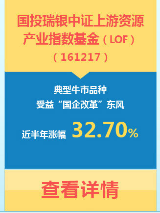 历史上股市启动的几轮反弹中,中证上游资源在对比的几大指数中反弹力度大,成为市场反弹领涨板块。同时,今年被视为“国企改革元年”,国企改革受益股成为资本市场重大风口。有色金属、煤炭行业作为国企改革重要领域之一,其长期价值有望获得显著提升。本轮牛市到目前为止,中证上游指数仅上涨36.99%,落后于其他指数,后期上涨空间大。据基金2015年第一季度报告,截至2015年3月31日,国投瑞银中证上游资源产业指数基金近半年净值涨幅为32.70%,同期业绩比较基准收益率为33.01%。 |